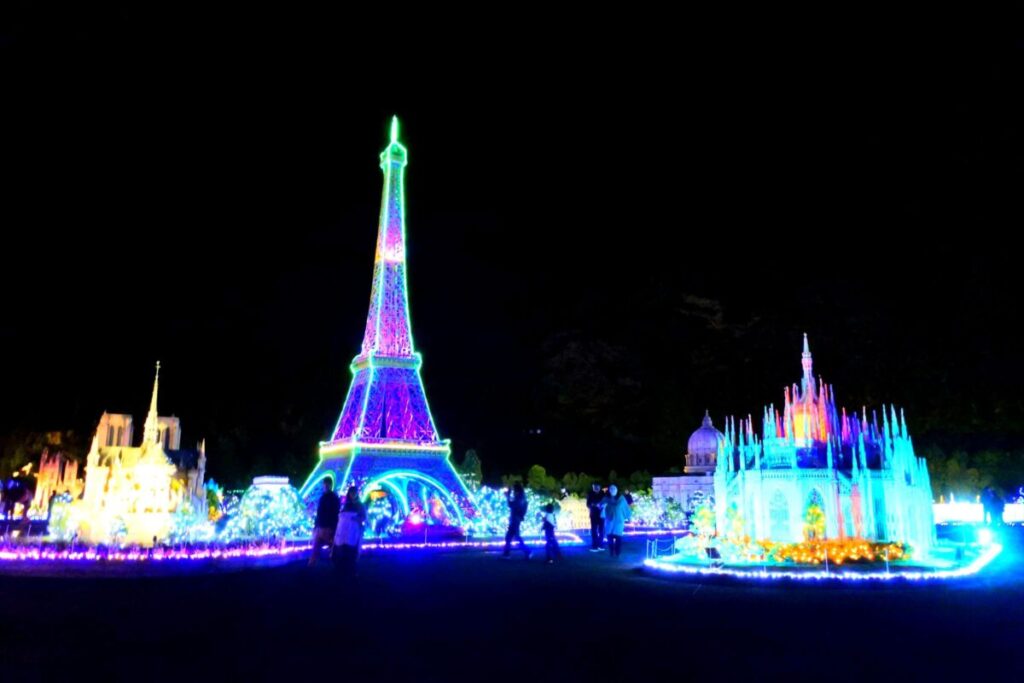 冬季はライトアップでミニチュアが映え、写真の雰囲気が一段とドラマチックになります。冷え込みや混雑が比較的穏やかな平日夜は歩きやすく、落ち着いたデートに向いています。