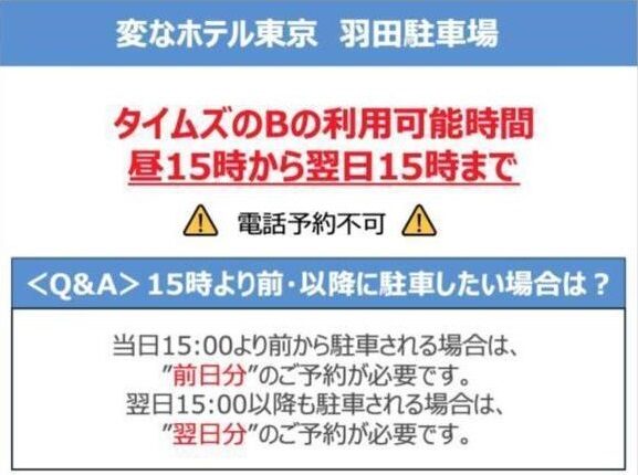 変なホテル東京羽田駐車場(大鳥居駅まで徒歩5分)