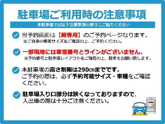 地方から利用。ナビで問題なく到着し、料金が断然安く助かった。軽なら問題なく入庫可能。